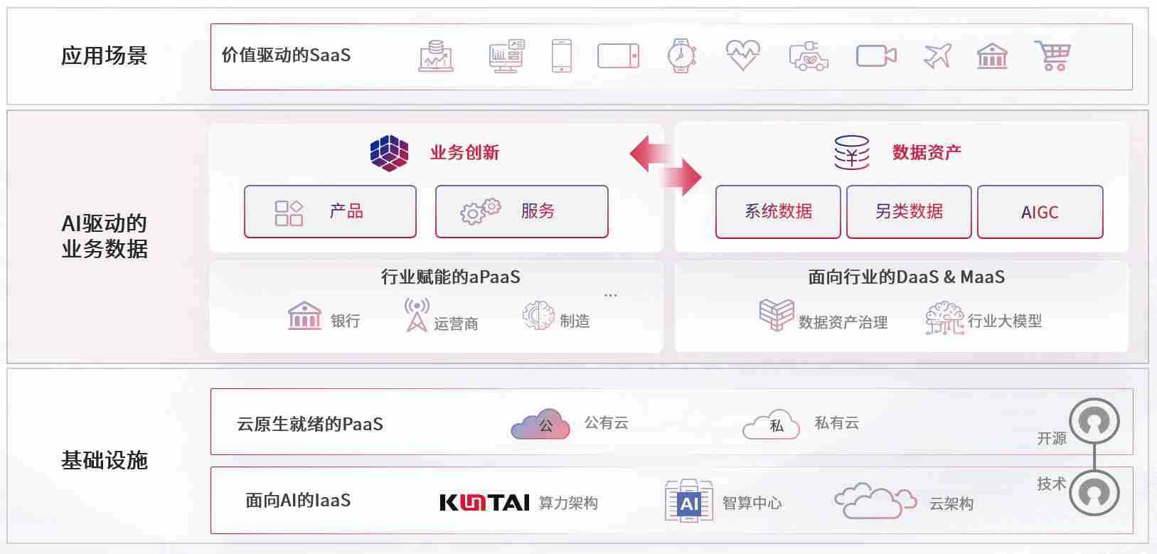 数字时代,,,围绕企业数字化转型的关键要素,,918.com数码开创性的提出数云融合战略和技术体系框架,,,着力在云原生、、数字原生、、、、AI原生和信创产业上架构产品和服务能力,,,,为处在不同数字化转型阶段的快消零售、、汽车、、、、金融、、、医疗、、、、政企、、、、教育、、运营商等行业客户提供泛在的敏捷IT能力和融合的数据驱动能力,,构建跨界融合创新的数字业务场景和新业务模式,,助力企业级客户建立面向未来的核心能力和竞争优势,,,全面推动社会的数字化、、、、智能化转型升级。。。